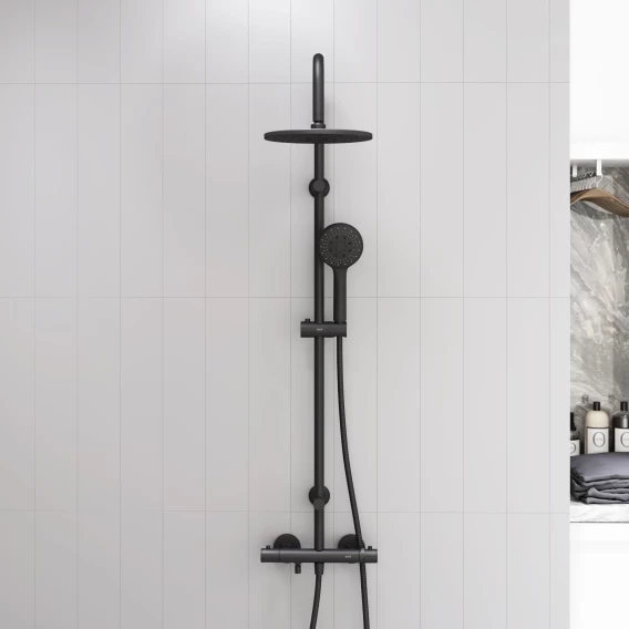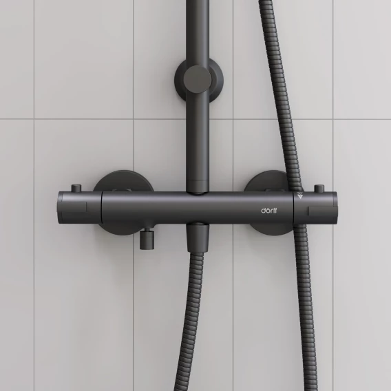 Душевая система Dorff Futura D07105 с термостатом, 220 мм, черный матовый