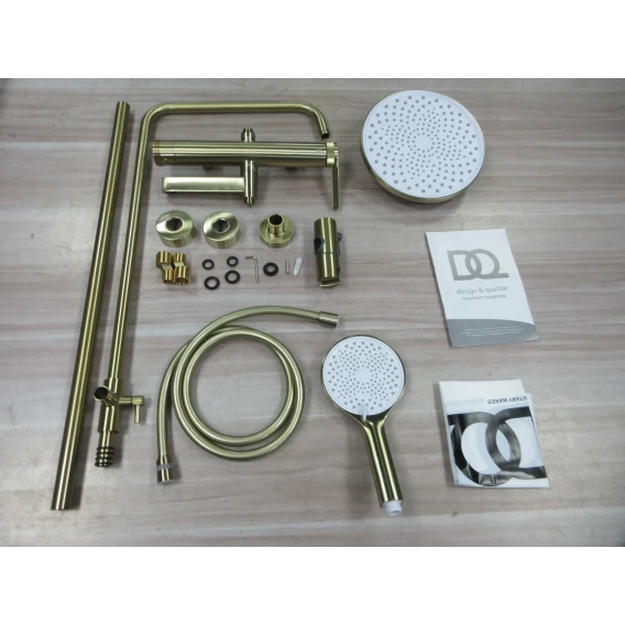 Аэратор, Металлическая розетка, Эксцентрики, Душевой шланг, Душевая лейка, Держатель для душевой лейки, Верхний душ, Смеситель, Кронштейн, Штанга душевая