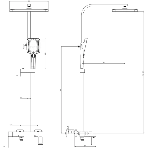 Аэратор, Металлическая розетка, Эксцентрики, Душевой шланг, Душевая лейка, Держатель для душевой лейки, Верхний душ, Смеситель, Кронштейн, Штанга душевая