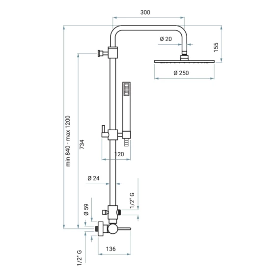 Металлическая розетка, Эксцентрики, Душевой шланг, Душевая лейка, Держатель для душевой лейки, Верхний душ, Смеситель, Кронштейн, Штанга душевая