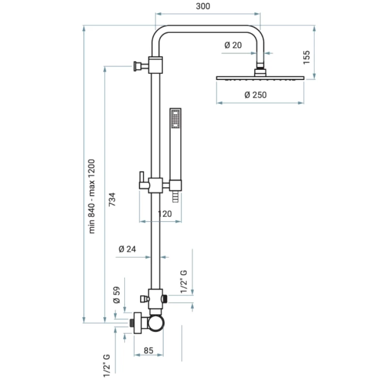 Металлическая розетка, Эксцентрики, Душевой шланг, Душевая лейка, Держатель для душевой лейки, Верхний душ, Смеситель, Кронштейн, Штанга душевая