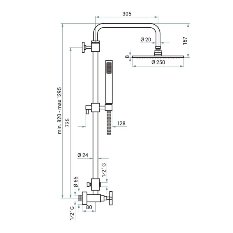 Металлическая розетка, Эксцентрики, Душевой шланг, Душевая лейка, Держатель для душевой лейки, Верхний душ, Смеситель, Кронштейн, Штанга душевая