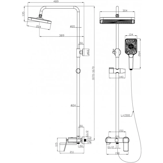 Аэратор, Металлическая розетка, Эксцентрики, Душевой шланг, Душевая лейка, Держатель для душевой лейки, Верхний душ, Смеситель, Кронштейн, Штанга душевая