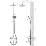 Аэратор, Металлическая розетка, Эксцентрики, Душевой шланг, Душевая лейка, Держатель для душевой лейки, Верхний душ, Смеситель, Кронштейн, Штанга душевая