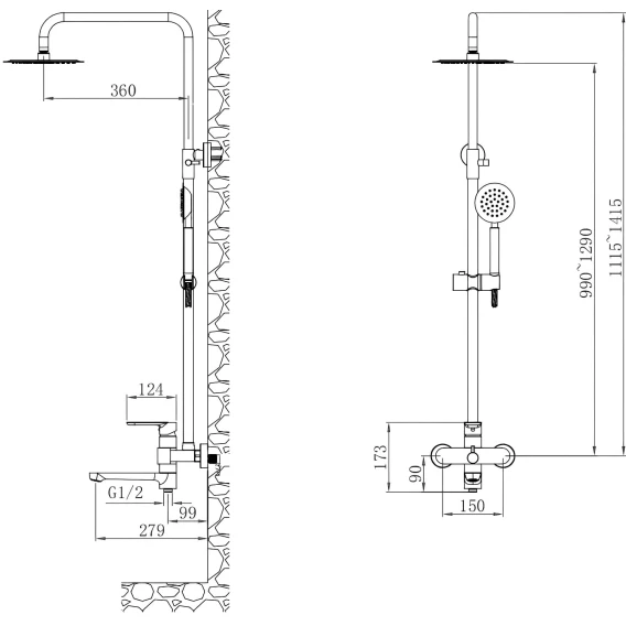 Аэратор, Металлическая розетка, Эксцентрики, Душевой шланг, Душевая лейка, Держатель для душевой лейки, Верхний душ, Смеситель, Кронштейн, Штанга душевая