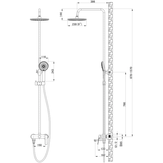 Аэратор, Металлическая розетка, Эксцентрики, Душевой шланг, Душевая лейка, Держатель для душевой лейки, Верхний душ, Смеситель, Кронштейн, Штанга душевая