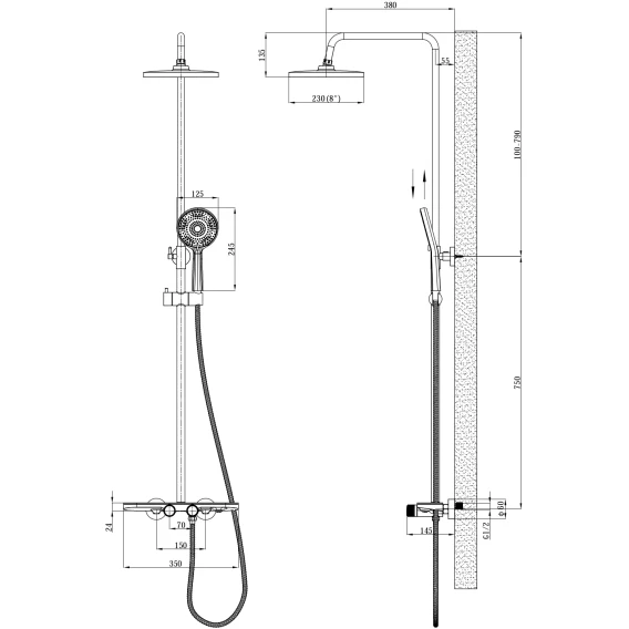 Душевая стойка Esko ST1350N 230 мм, хром
