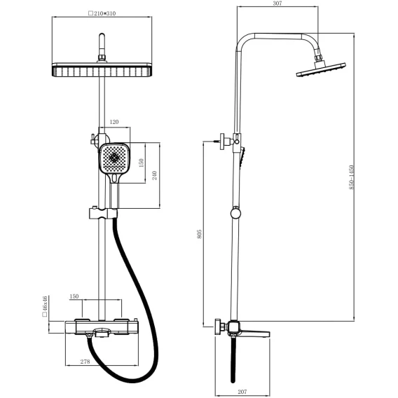 Душевая система Esko STT3054Black 310x210 мм, с термостатом, черный матовый