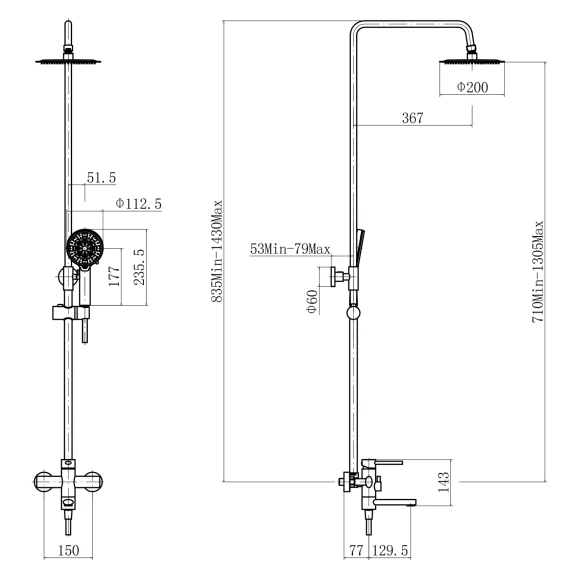 Аэратор, Металлическая розетка, Эксцентрики, Душевой шланг, Душевая лейка, Держатель для душевой лейки, Верхний душ, Смеситель, Кронштейн, Штанга душевая