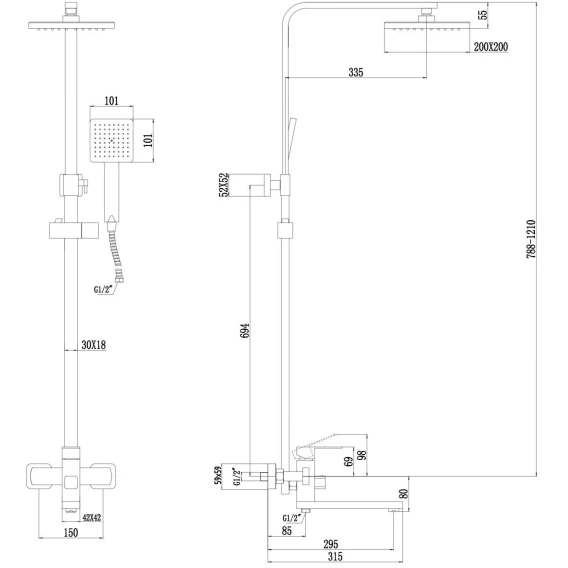 Душевая система Fmark FS8145-25H 200 мм, со смесителем, черный матовый