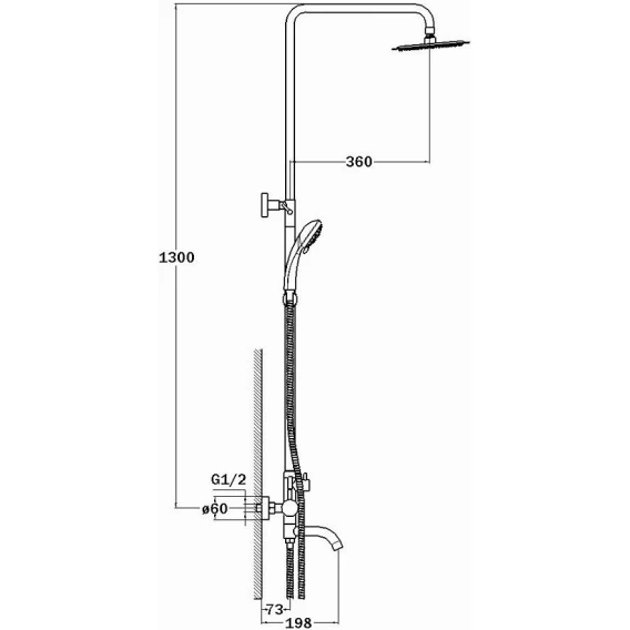 Душевая система G.Lauf ZAP16-A090 200 мм, со смесителем, нержавеющая сталь