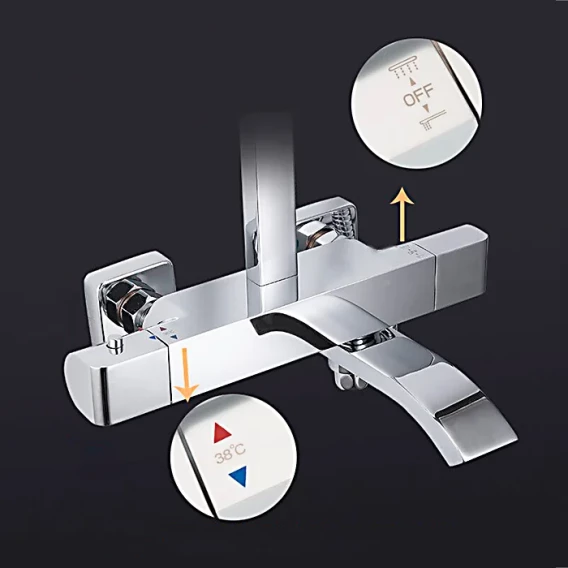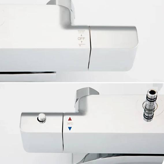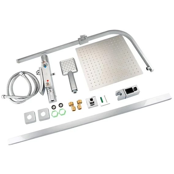 Аэратор, Металлическая розетка, Эксцентрики, Душевой шланг, Душевая лейка, Держатель для душевой лейки, Верхний душ, Кронштейн, Штанга душевая, Термостат