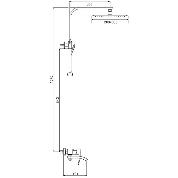 Аэратор, Металлическая розетка, Эксцентрики, Душевой шланг, Душевая лейка, Держатель для душевой лейки, Верхний душ, Смеситель, Кронштейн, Штанга душевая