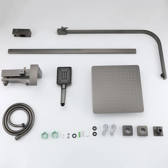 Аэратор, Металлическая розетка, Эксцентрики, Душевой шланг, Душевая лейка, Держатель для душевой лейки, Верхний душ, Смеситель, Кронштейн, Штанга душевая