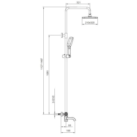 Аэратор, Металлическая розетка, Эксцентрики, Душевой шланг, Душевая лейка, Держатель для душевой лейки, Верхний душ, Смеситель, Кронштейн, Штанга душевая