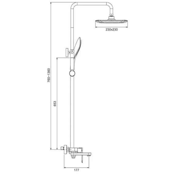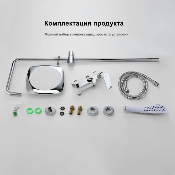 Аэратор, Металлическая розетка, Эксцентрики, Душевой шланг, Душевая лейка, Держатель для душевой лейки, Верхний душ, Смеситель, Кронштейн, Штанга душевая
