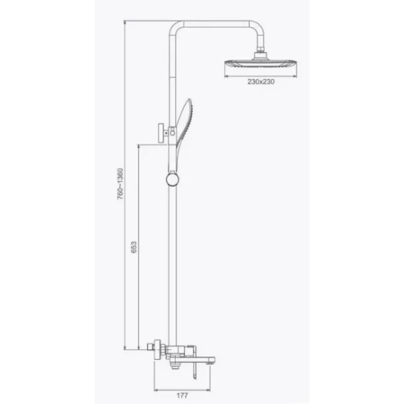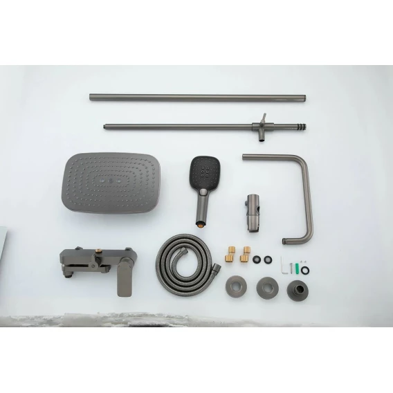 Аэратор, Металлическая розетка, Эксцентрики, Душевой шланг, Душевая лейка, Держатель для душевой лейки, Верхний душ, Смеситель, Кронштейн, Штанга душевая