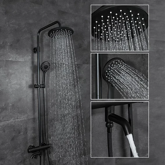 Душевая система Gappo G2490-6 225 мм, с термостатом, черный матовый