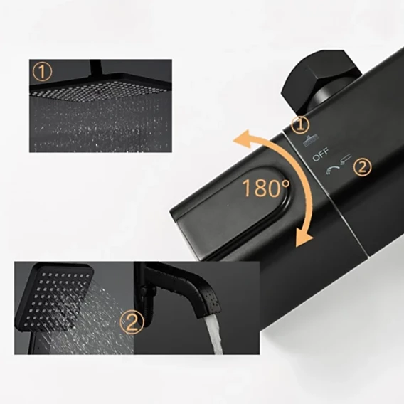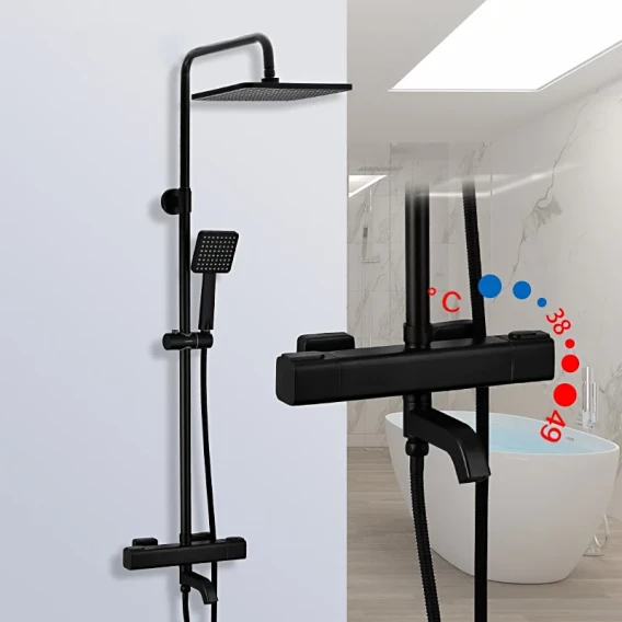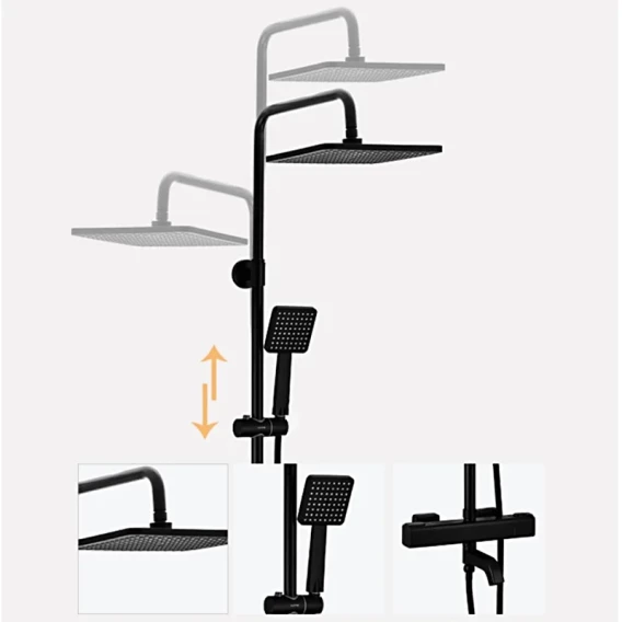 Душевая система Gappo G2491-6 250 мм, с термостатом, черный матовый