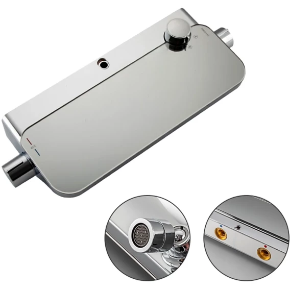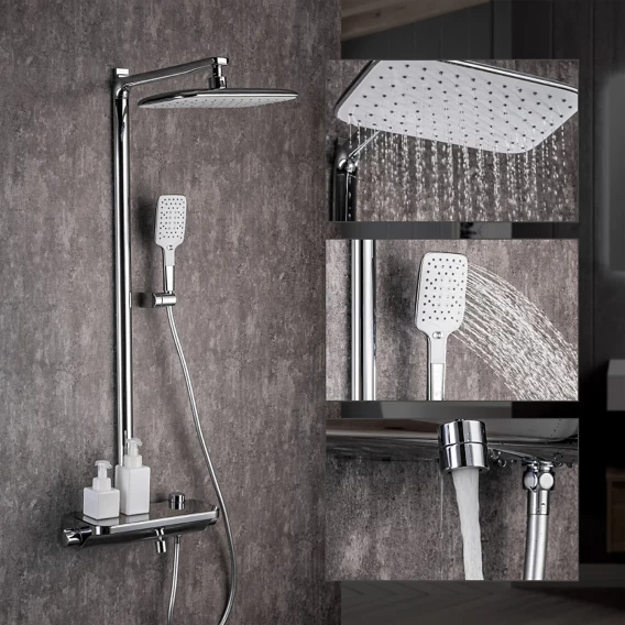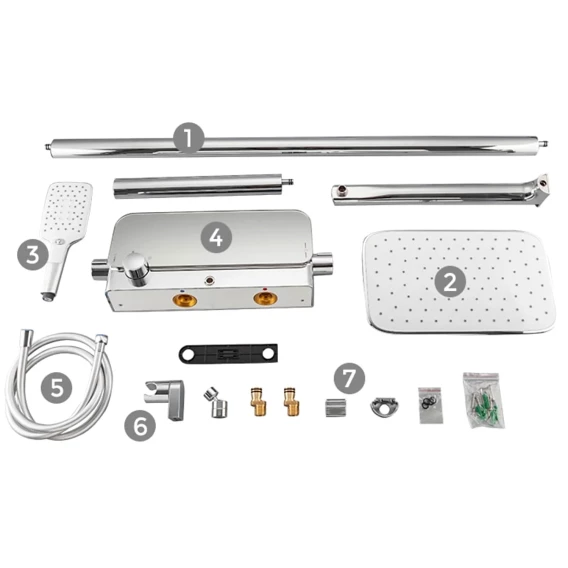 Аэратор, Эксцентрики, Душевой шланг, Душевая лейка, Держатель для душевой лейки, Полочка, Верхний душ, Кронштейн, Штанга душевая, Термостат