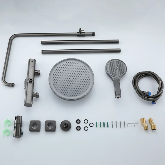 Аэратор, Металлическая розетка, Эксцентрики, Душевой шланг, Душевая лейка, Держатель для душевой лейки, Верхний душ, Кронштейн, Штанга душевая, Термостат