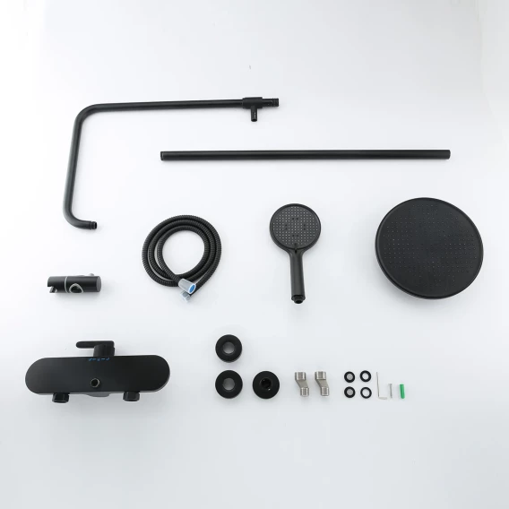Аэратор, Металлическая розетка, Эксцентрики, Душевой шланг, Душевая лейка, Держатель для душевой лейки, Полочка, Верхний душ, Смеситель, Кронштейн, Штанга душевая