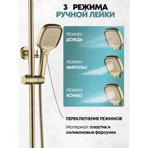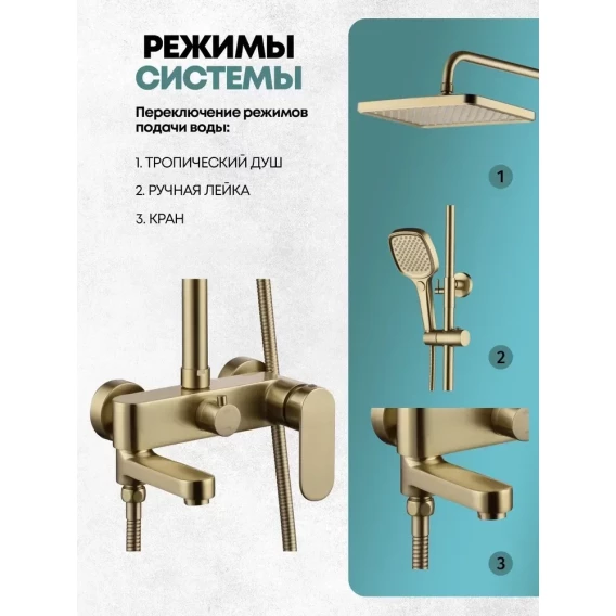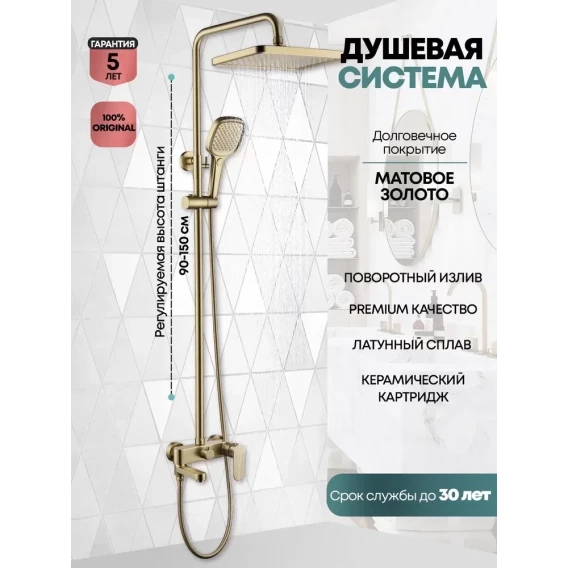 Душевая система Grocenberg GB7011MG 260x190 мм, со смесителем, золотой матовый