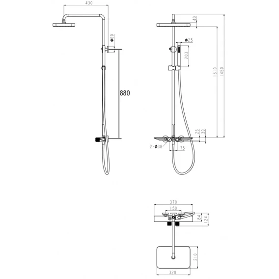 Аэратор, Металлическая розетка, Эксцентрики, Душевой шланг, Душевая лейка, Держатель для душевой лейки, Полочка, Верхний душ, Кронштейн, Штанга душевая, Термостат