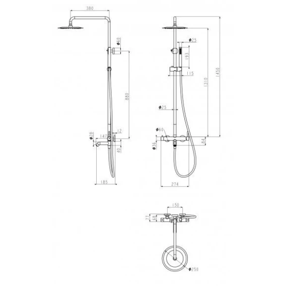 Аэратор, Металлическая розетка, Эксцентрики, Душевой шланг, Душевая лейка, Держатель для душевой лейки, Верхний душ, Смеситель, Кронштейн, Штанга душевая