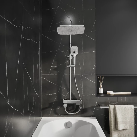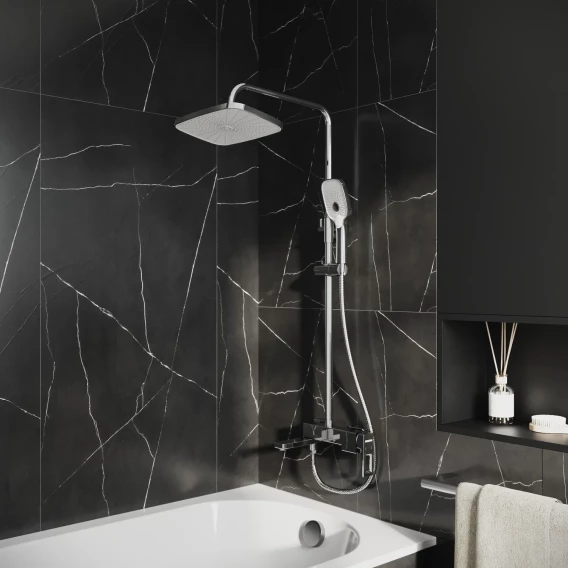 Аэратор, Металлическая розетка, Эксцентрики, Душевой шланг, Душевая лейка, Держатель для душевой лейки, Верхний душ, Смеситель, Кронштейн, Штанга душевая