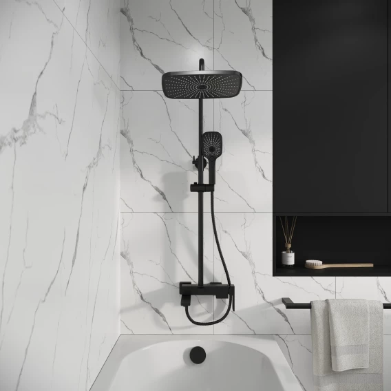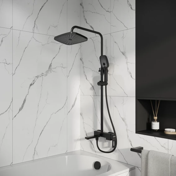Аэратор, Металлическая розетка, Эксцентрики, Душевой шланг, Душевая лейка, Держатель для душевой лейки, Верхний душ, Смеситель, Кронштейн, Штанга душевая