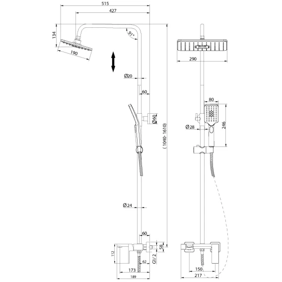 Душевая система Grossman Style 500.K35.05.100 290x190 мм, со смесителем, хром