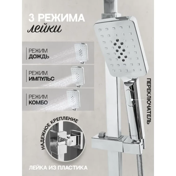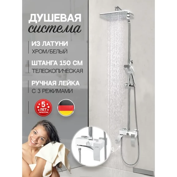 Душевая система Hansberge Cubito H5077W1 285x190 мм, со смесителем, хром/белый