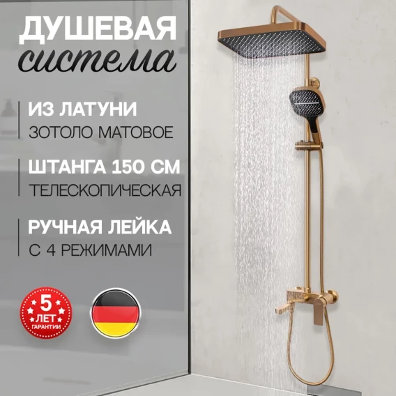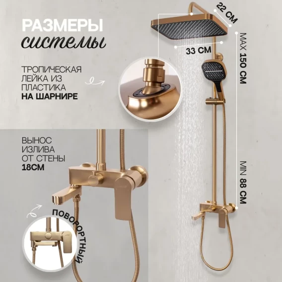 Душевая система Hansberge H5049MG 330x220 мм, со смесителем, золотой матовый