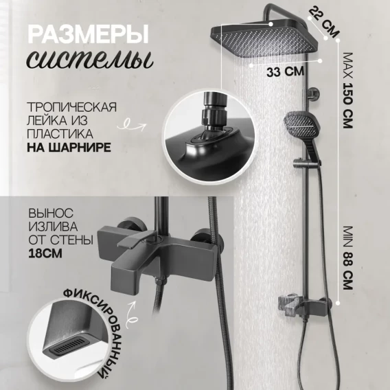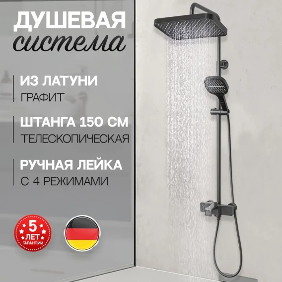 Душевая система Hansberge H5065BG 330x220 мм, со смесителем, графит