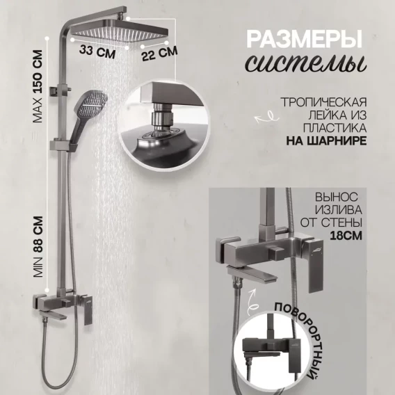 Душевая система Hansberge H5070BG 330x220 мм, со смесителем, графит