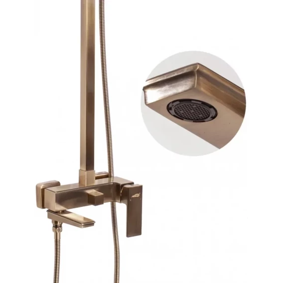 Аэратор, Металлическая розетка, Эксцентрики, Душевой шланг, Душевая лейка, Держатель для душевой лейки, Верхний душ, Смеситель, Кронштейн, Штанга душевая