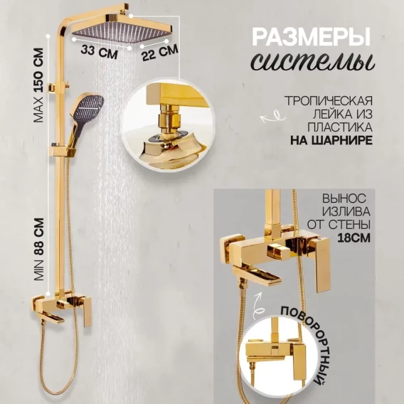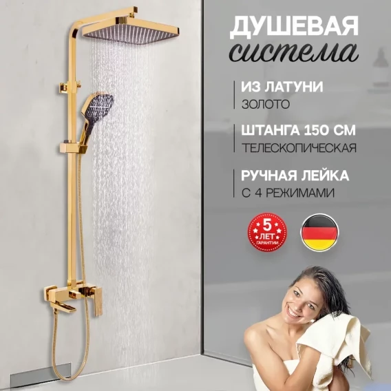 Душевая система Hansberge H5070GO 330x220 мм, со смесителем, золотой