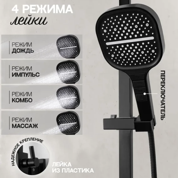Душевая система Raffine F3699H 320x210 мм, со смесителем, черный матовый