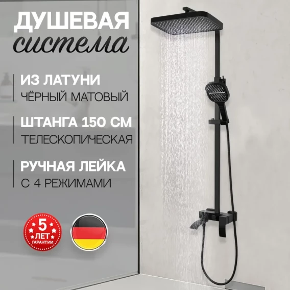 Душевая система Hansberge H5077BL 330x220 мм, со смесителем, черный матовый