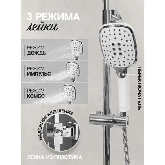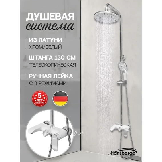Душевая система Hansberge Opera H5033W 230 мм, со смесителем, хром/белый