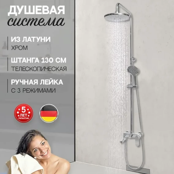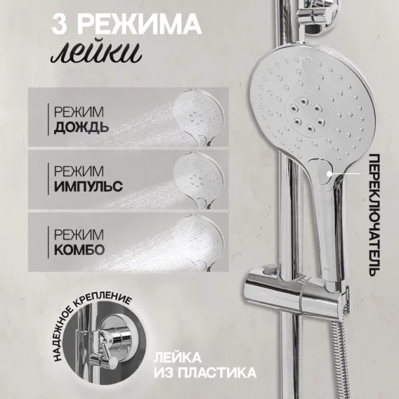 Душевая система Hansberge Optima H5044C 230 мм, со смесителем, хром