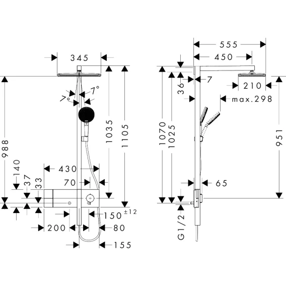 • макс. расход воды Showerpipe при 3 бар: 12 л/мин