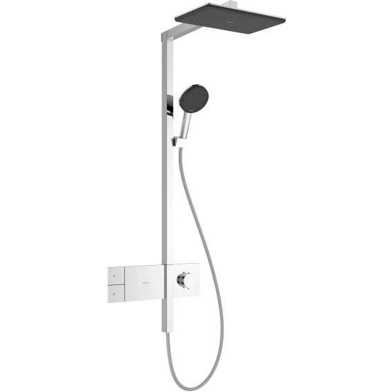 • включает: верхний душ, ручной душ, термостат для душа, душевая штанга, слайдер, текстильный шланг