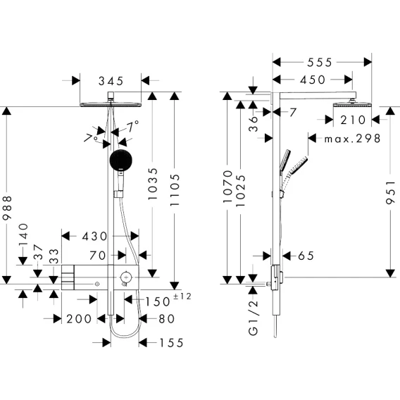 • макс. расход воды Showerpipe при 3 бар: 12 л/мин