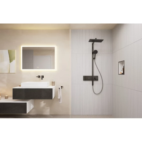 Душевая система Hansgrohe Raindance Alive Q 24590340 345x210 мм, с термостатом, черный хром матовый