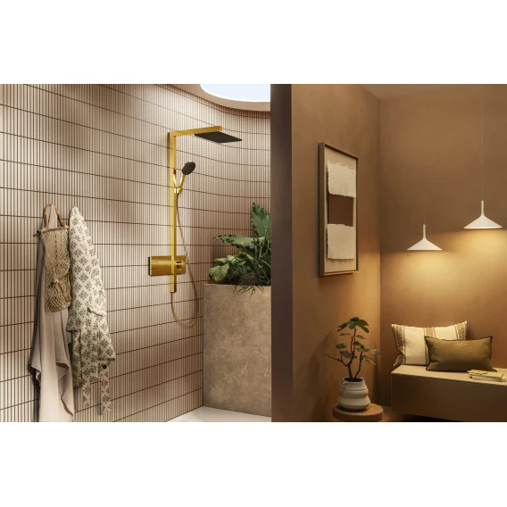 Душевая система Hansgrohe Raindance Alive Q 24590990 345x210 мм, с термостатом, золотой