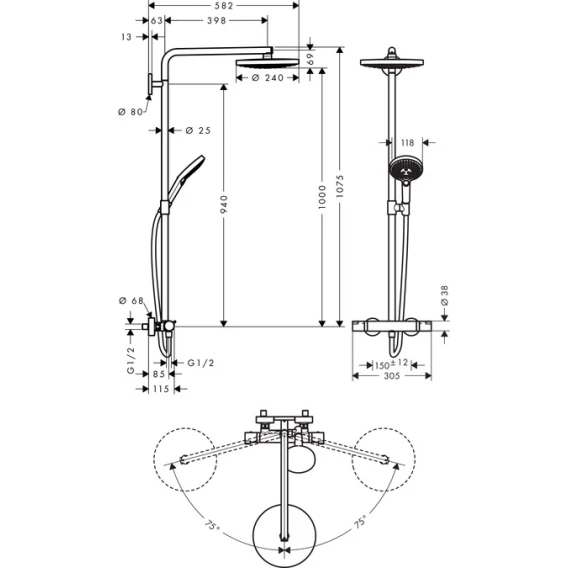 • верхний душ Raindance Select S 240 2jet