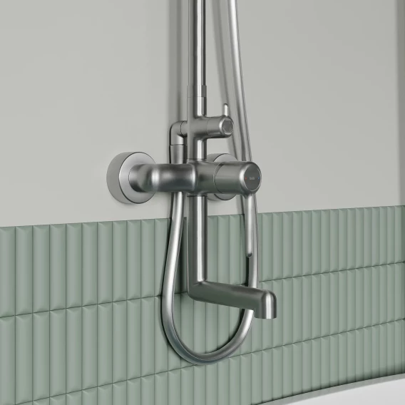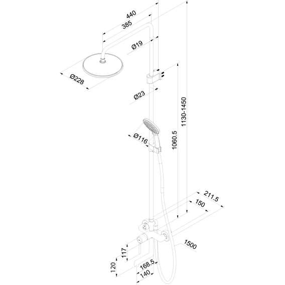 Аэратор, Металлическая розетка, Эксцентрики, Душевой шланг, Душевая лейка, Держатель для душевой лейки, Верхний душ, Смеситель, Кронштейн, Штанга душевая