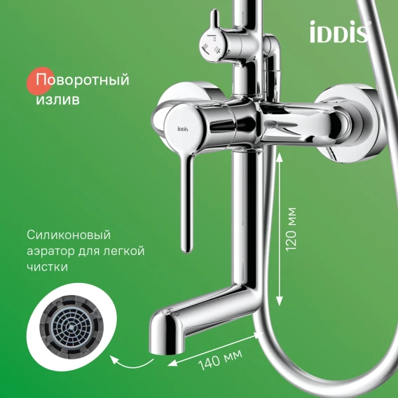 Душевая система IDDIS Aiger AIGSB3Fi06 228 мм, со смесителем, хром